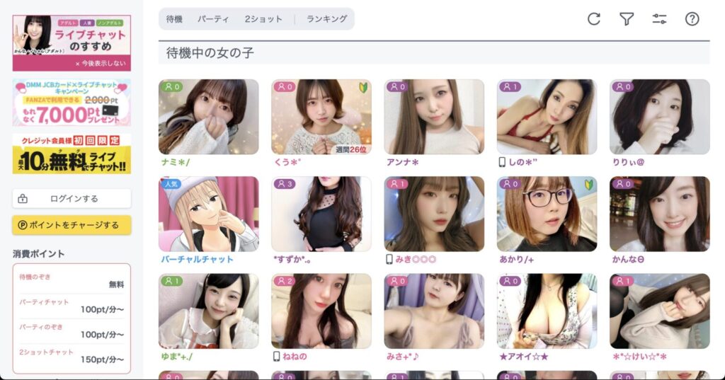 登録が済んだら、ログインして待機中の女の子一覧を眺めてみましょう。