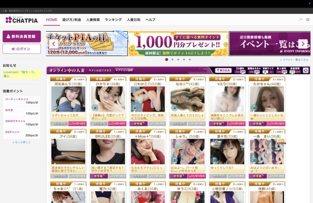 迷ったらここ、という王道ポジション。エロテレビ電話を「ちゃんと楽しみたい」人に向いていて、女の子のタイプも幅広めです。初めての人でも流れが分かりやすく、覗き見感覚で雰囲気を掴めます。