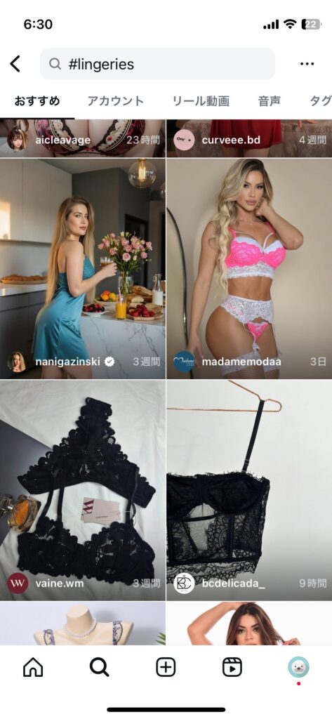 日本よりも規制がゆるい海外の女性たちが、水着やランジェリー姿で投稿するアカウント。