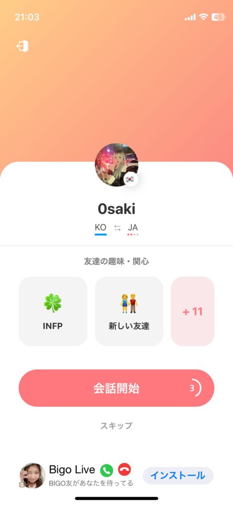 結論として、「誰でもいいから、とにかく色々な韓国人と話してみたい」という使い方であれば、無料でも十分に楽しむことができます。