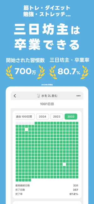 - 「今まで色々な習慣化アプリを試してきたけど、これだけはずっと続いてる!」