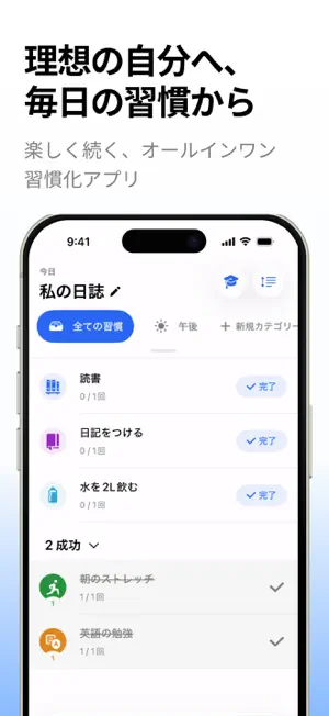 「今日のやることリスト」と「続けたい習慣」を一つのアプリでシームレスに管理したい。