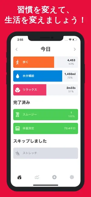 リマインダーで行動のきっかけを作り、進捗をグラフなどで可視化することで達成感を与えてくれるため、一人で頑張るよりもずっと楽に習慣を身につけることができるのです。