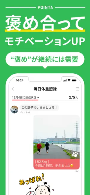 また、同じ目標を持つ仲間と励まし合えるソーシャル機能も、モチベーション維持に非常に効果的です。